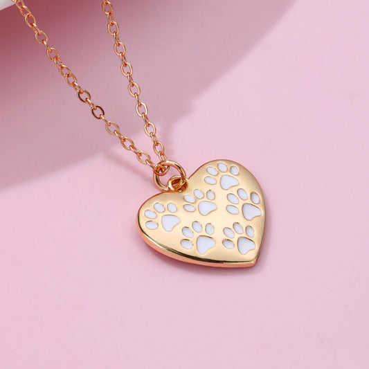 Heart Cat's Paw Necklace Simple Alloy Dripping Oil